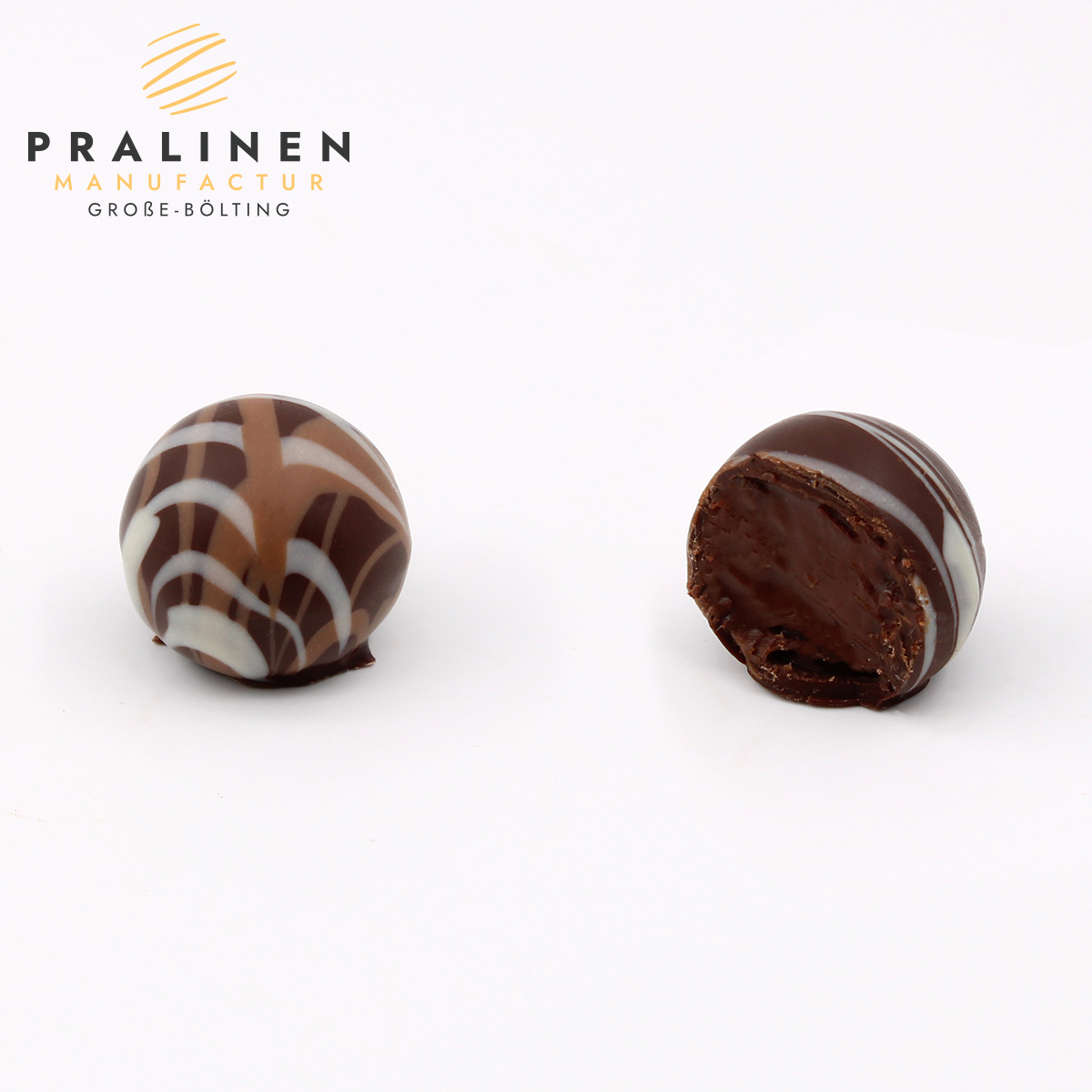 Feinherbe Bitterschokolade umhüllt einen Ganache aus Butter, frischer Sahne und aromatischem Malt Scotch Whisky