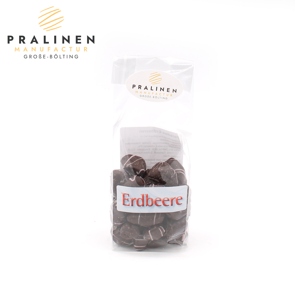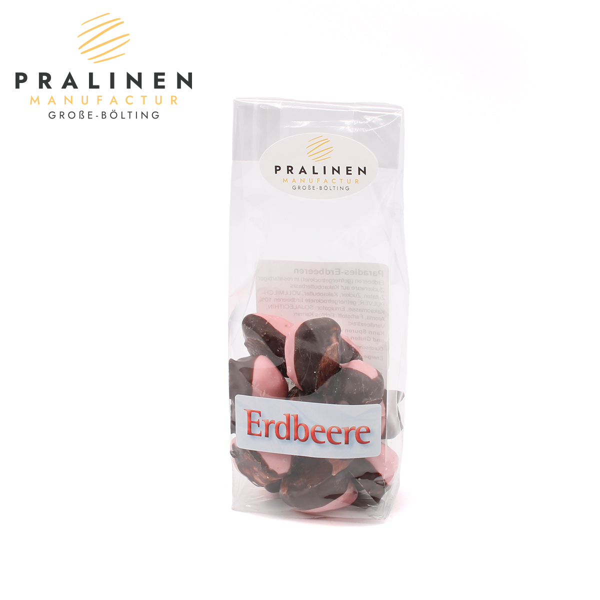 Unsere Paradies-Erdbeeren sind gefriergetrocknete Erdbeeren und deshalb super knackig und fruchtig. Der zartschmelzende rosa Überzug rundet das Geschmackserlebnis ab. Die gefriergetrockneten Erdbeeren gibt es jetzt auch in einer zweiten Variante, nämlich komplett mit Zartbitterschokolade überzogen.