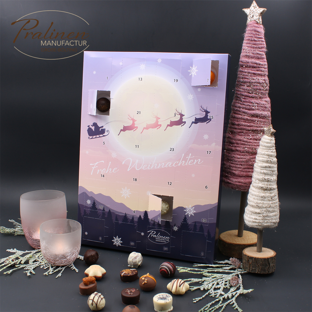 Suchen Sie sich aus unserer Pralinen-Auswahl ihre Lieblingspralinen aus und gestalten Sie sich einen ganz individuellen Adventskalender.